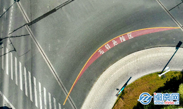 在丰海路城东街路口、丰海路云鹿路路口等主干道路口,丰泽交警还用彩色防滑标线、黄色振荡标线标识出路口右转危险区域,区域内有“右转危险区”五个醒目大字,提示非机动车、行人在经过路口或者等待红绿灯时不要进入该区域,尽量与大型车辆保持较远的距离,同时也提醒大型车辆右转弯时不要碾压该区域外侧标线,要尽量转大弯,远离行人和非机动车。